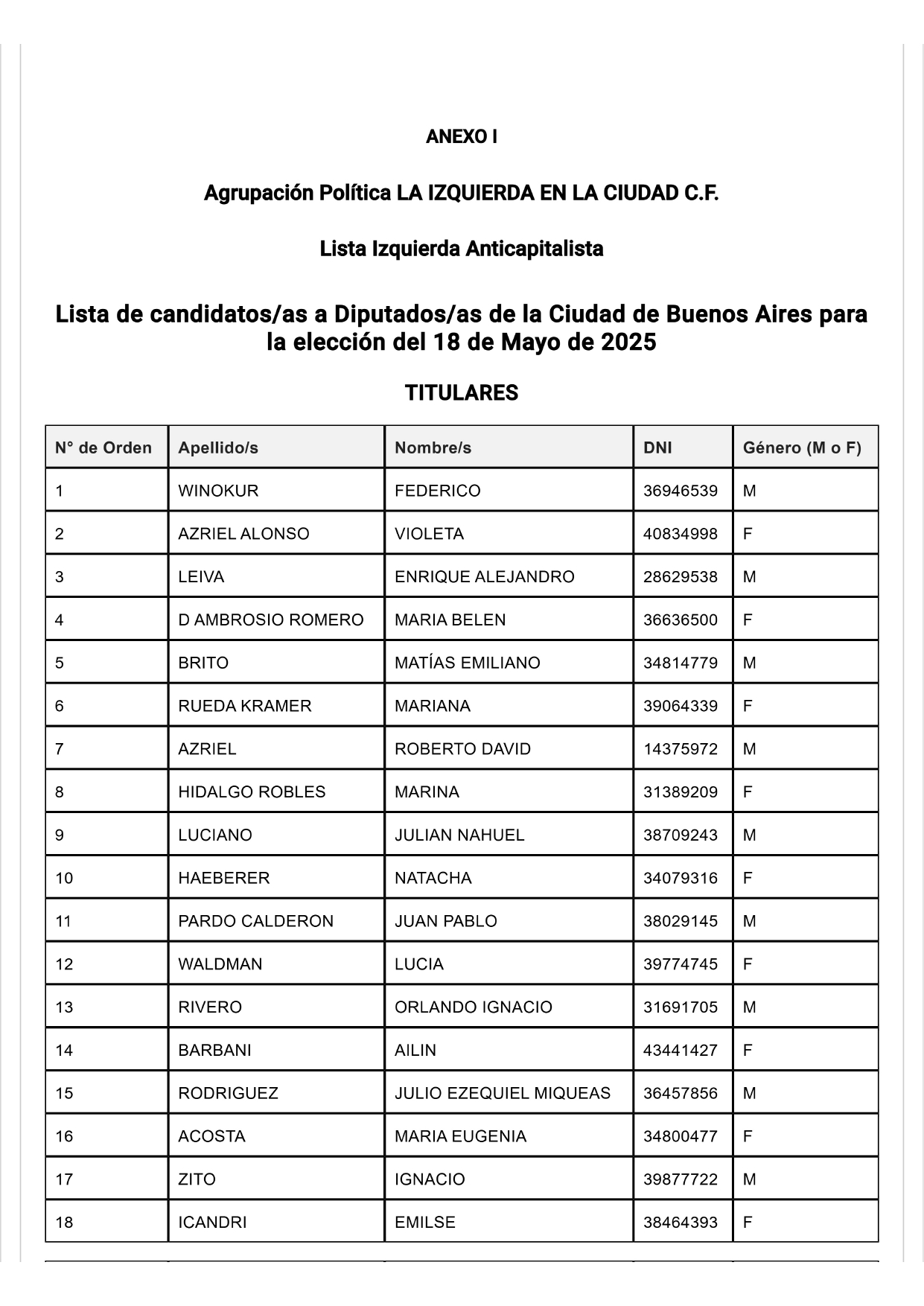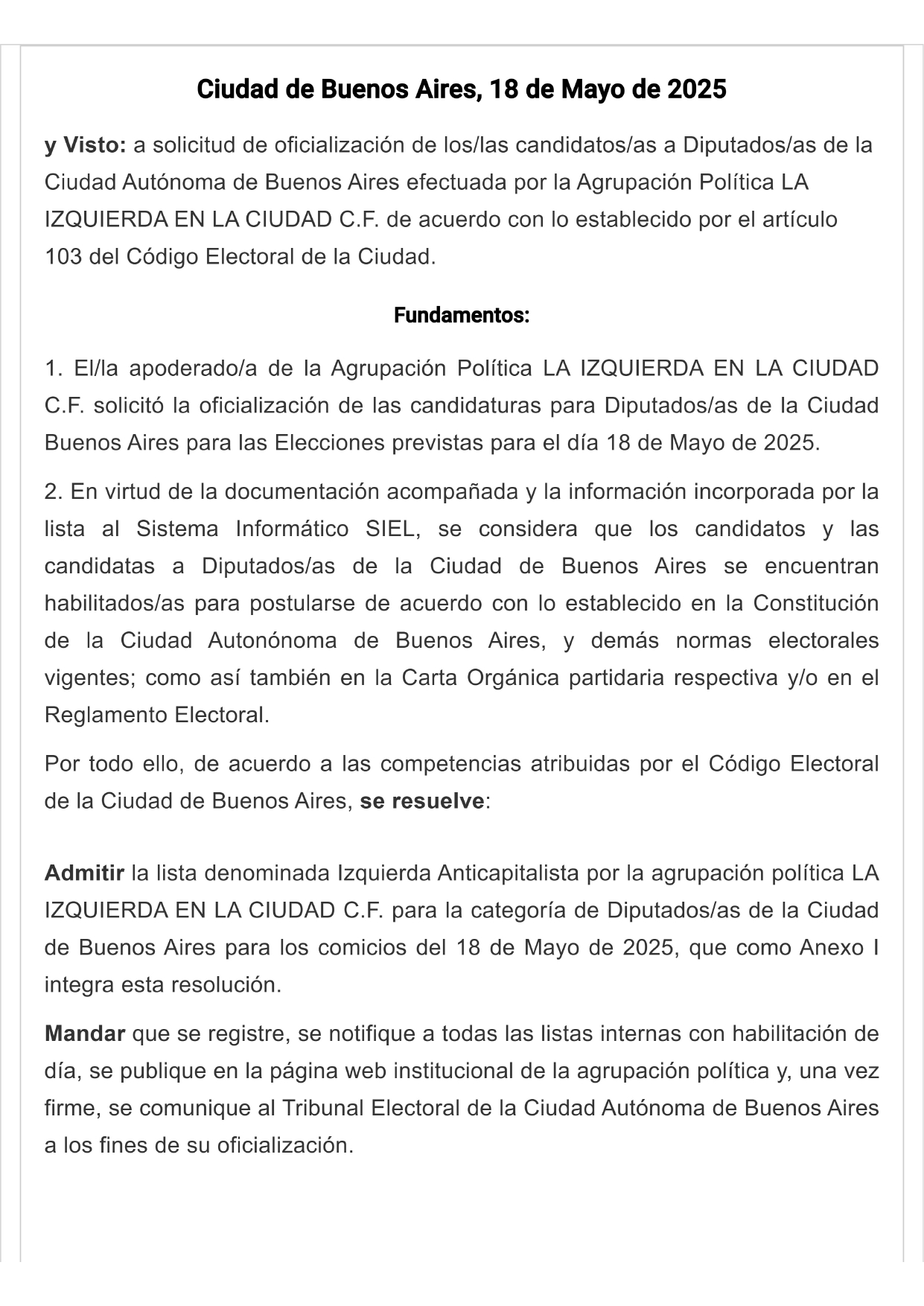 InicioElecciones Ciudad 18 de mayo 2025 Elecciones Ciudad 18 de mayo 2025 Resolución de oficialización, 18 de mayo 2025 29/03/2025 63 Artículo anteriorManifiesto anticapitalista para la CiudadArtículo siguienteActa del Congreso: La Izquierda en la Ciudad Related Articles Actas Acta del Congreso: La Izquierda en la Ciudad Elecciones Ciudad 18 de mayo 2025 Manifiesto anticapitalista para la Ciudad Elecciones Ciudad 18 de mayo 2025 Acta Congreso , 17 de marzo de 2025 Otros Articulos Actas Acta del Congreso: La Izquierda en la Ciudad Elecciones Ciudad 18 de mayo 2025 Manifiesto anticapitalista para la Ciudad Elecciones Ciudad 18 de mayo 2025 Acta Congreso , 17 de marzo de 2025 Paso-2023 ACTA JUNTA ELECTORAL PARTIDARIA N° 03. Paso-2023 LA IZQUIERDA EN LA CIUDAD: s/ oficialización de listas de precandidatos/as” Uncategorized ACTA JUNTA ELECTORAL PARTIDARIA N° 02. Paso-2023 ACTA JUNTA ELECTORAL PARTIDARIA N° 01. Paso-2023 ACTA JUNTA ELECTORAL PARTIDARIA N° 01. Paso-2023 Acta: ciudad de Buenos Aires a los 14 días del mes de Junio de 2023 Paso-2023 Acta Congreso partidario: Ciudad de Buenos Aires el 14 de junio de 2023 Cargar más